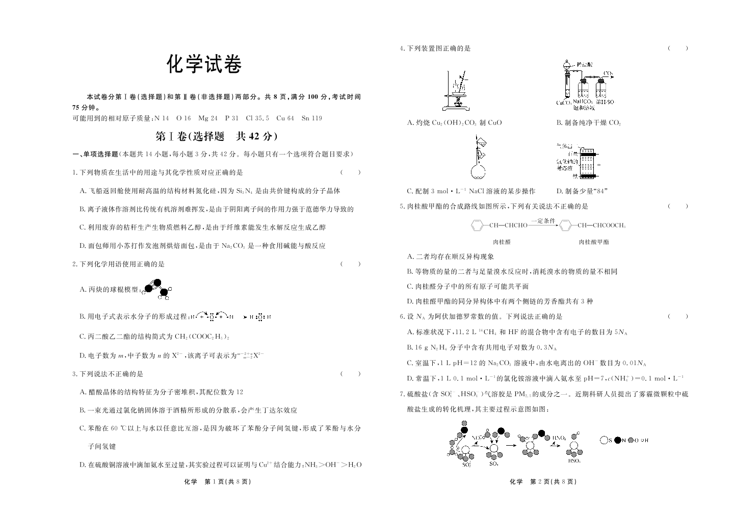 河北省承德市部分高中2023-2024学年高三上学期12月期中考试 化学