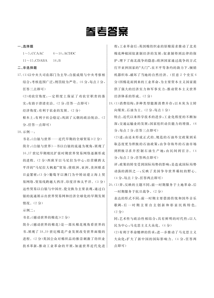 河北省承德市部分高中2023-2024学年高三上学期12月期中考试 历史答案