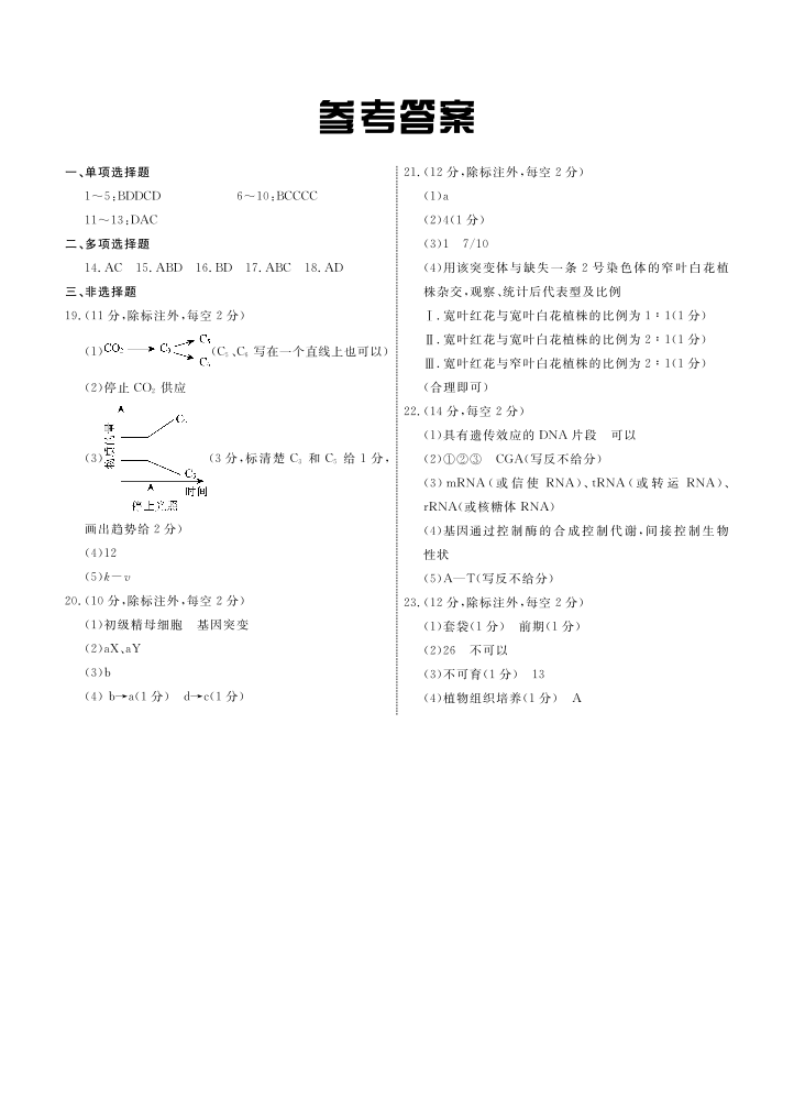 河北省承德市部分高中2023-2024学年高三上学期12月期中考试 生物答案