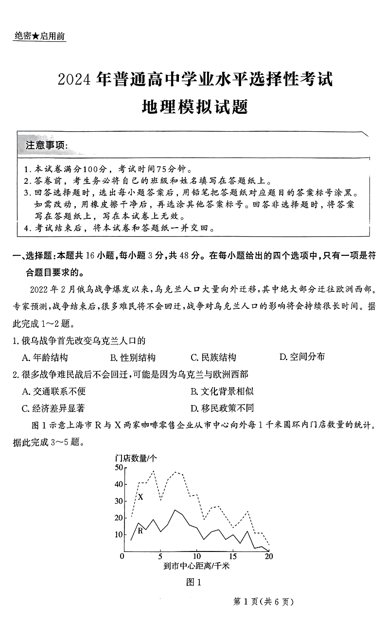 2024届河北省部分重点高中高三上学期学业水平选择性考试模拟 地理