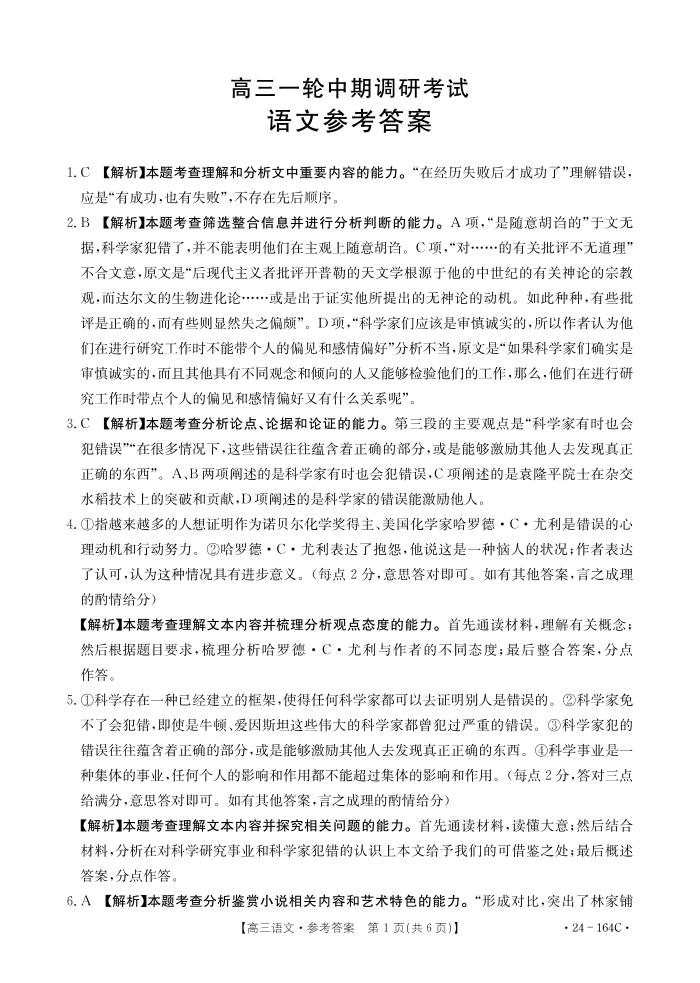 河北省廊坊2023-2024学年高三一轮中期调研考试 语文答案