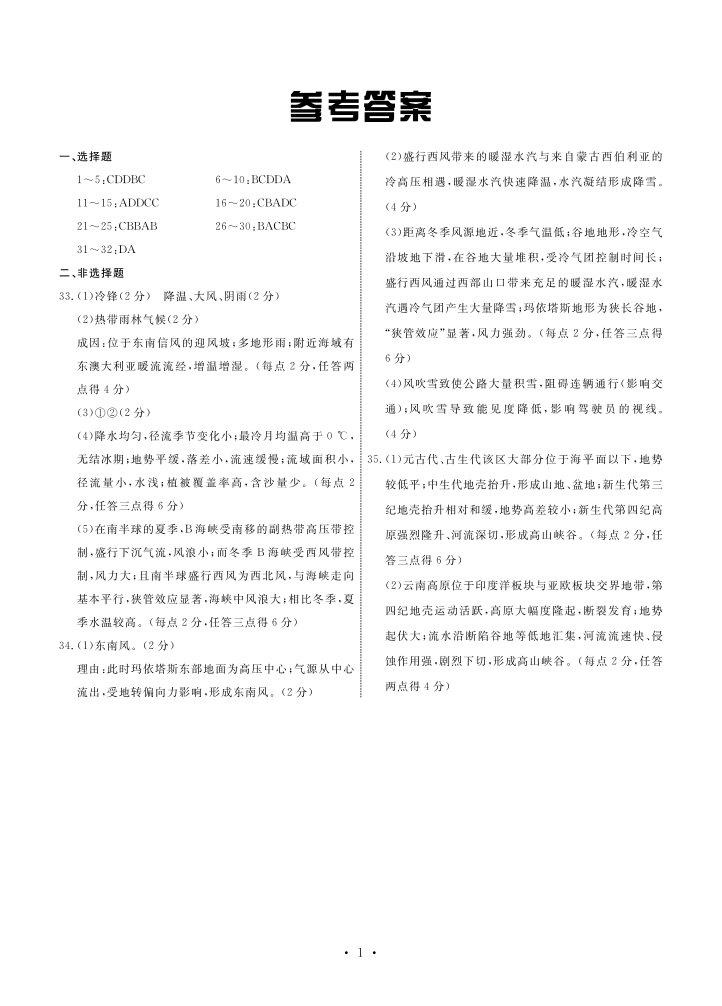 河北省沧州市部分高中2023-2024学年高三上学期11月期中考试 地理答案