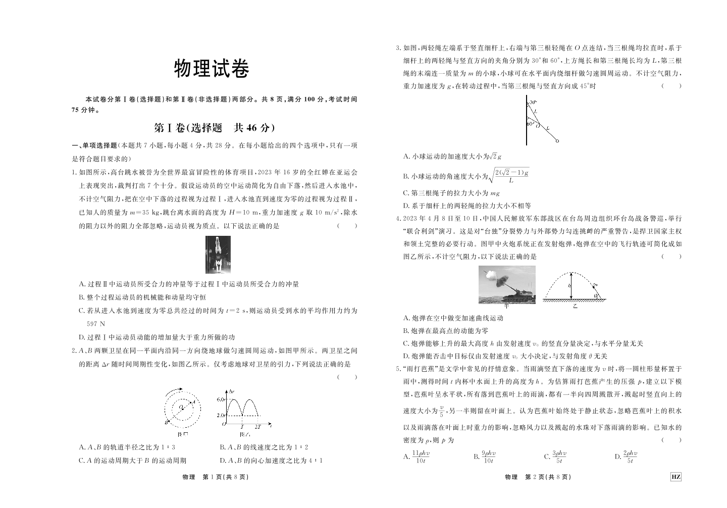 河北省沧州市部分高中2023-2024学年高三上学期11月期中考试 物理