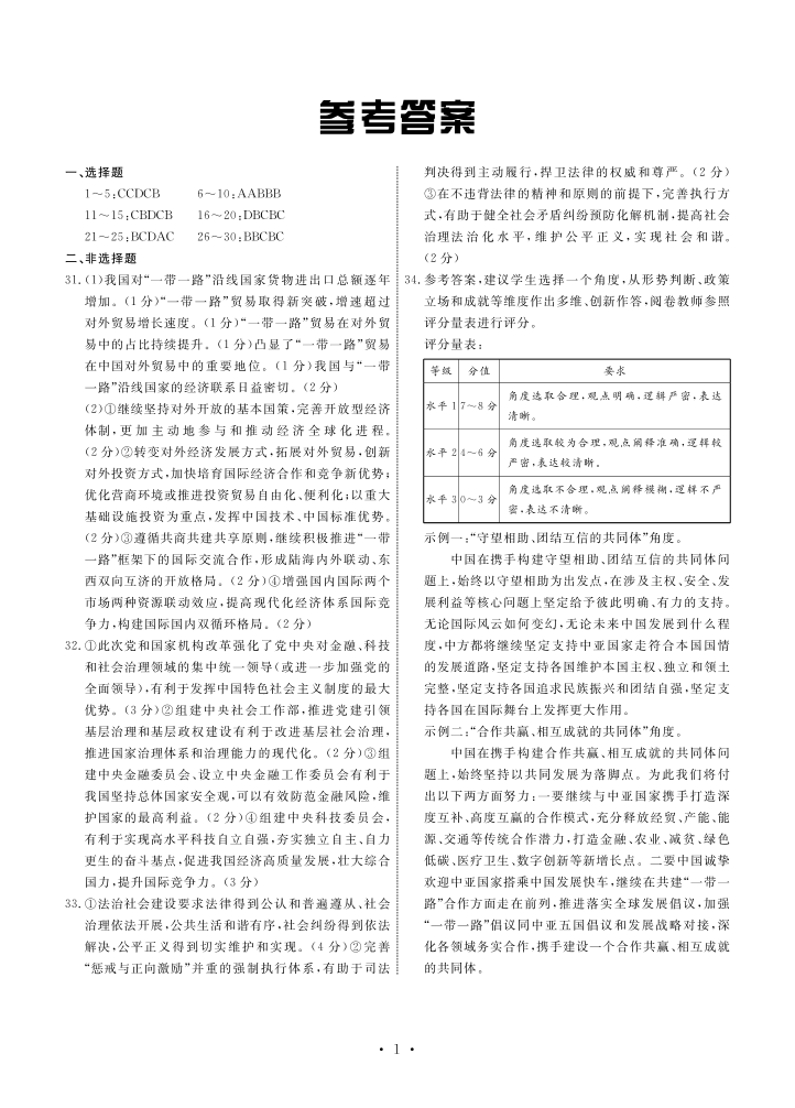 河北省沧州市部分高中2023-2024学年高三上学期11月期中考试 政治答案