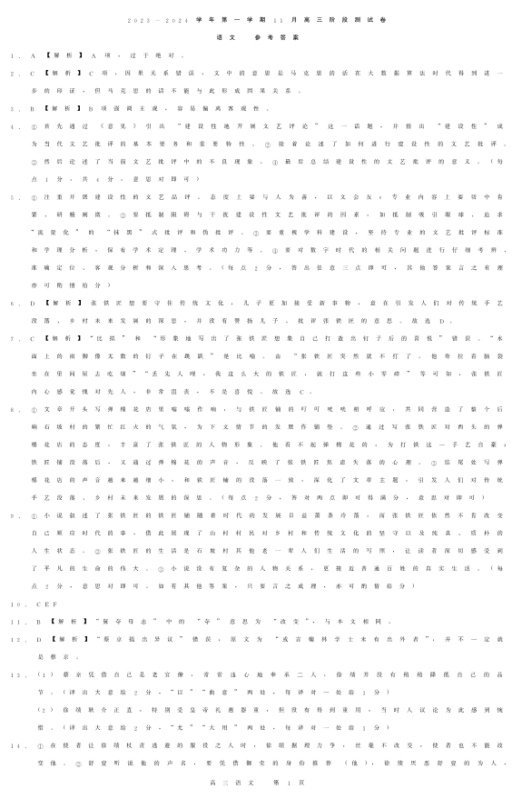 河北省新时代NT教育2023-2024学年第一学期11月高三阶段测试卷 语文答案