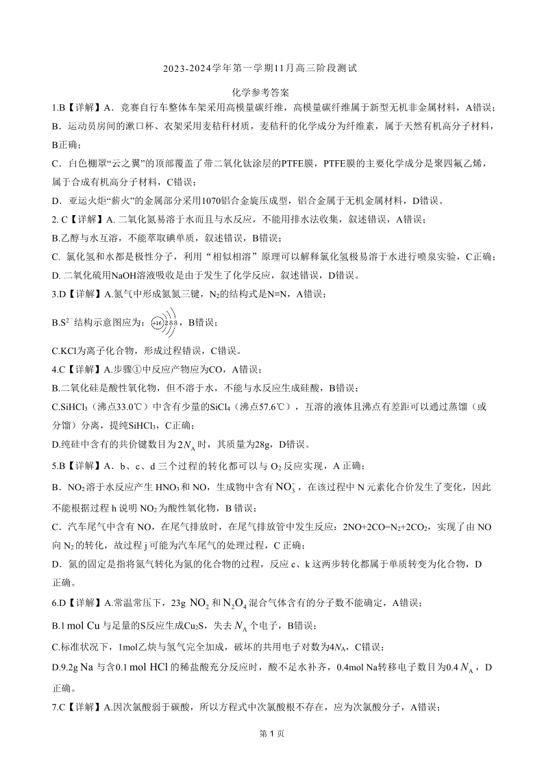 河北省新时代NT教育2023-2024学年第一学期11月高三阶段测试卷 化学答案