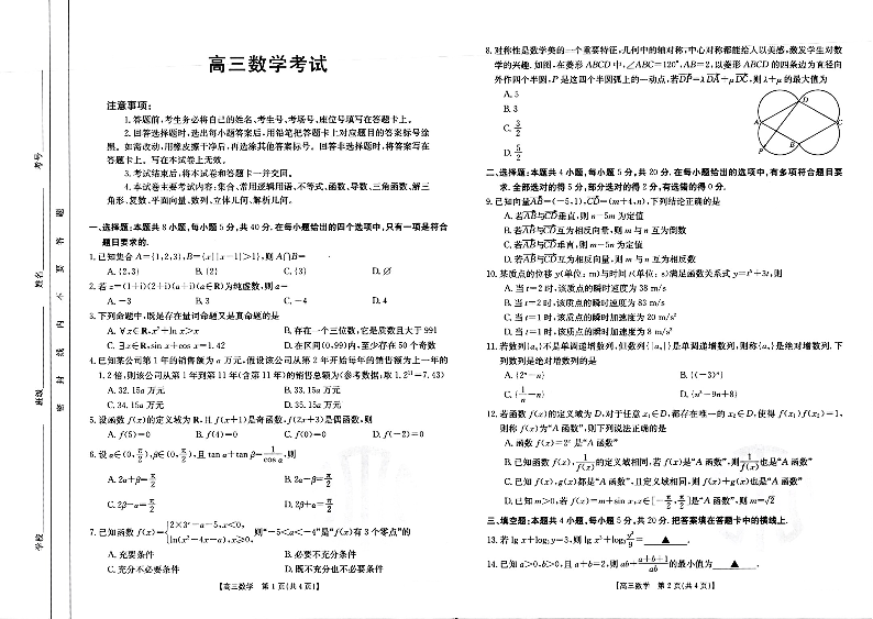 河北省保定市部分高中2023-2024学年高三上学期10月联考 数学