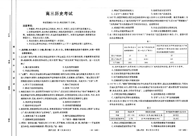 河北省保定市部分高中2023-2024学年高三上学期10月联考 历史