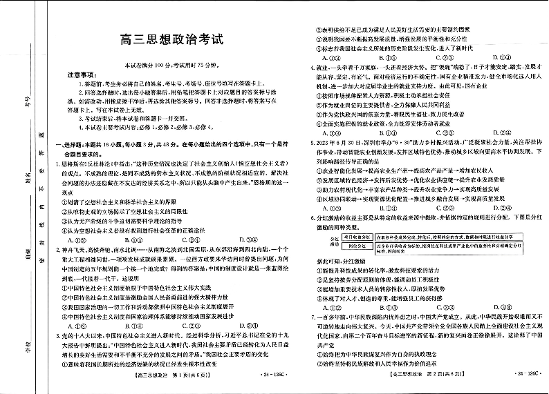 河北省保定市部分高中2023-2024学年高三上学期10月联考 政治