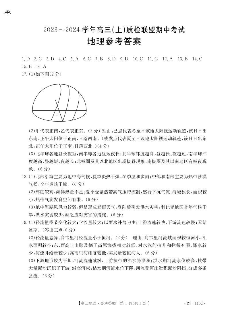 河北省邢台市四校质检联盟2023-2024学年高三上学期期中考试 地理答案