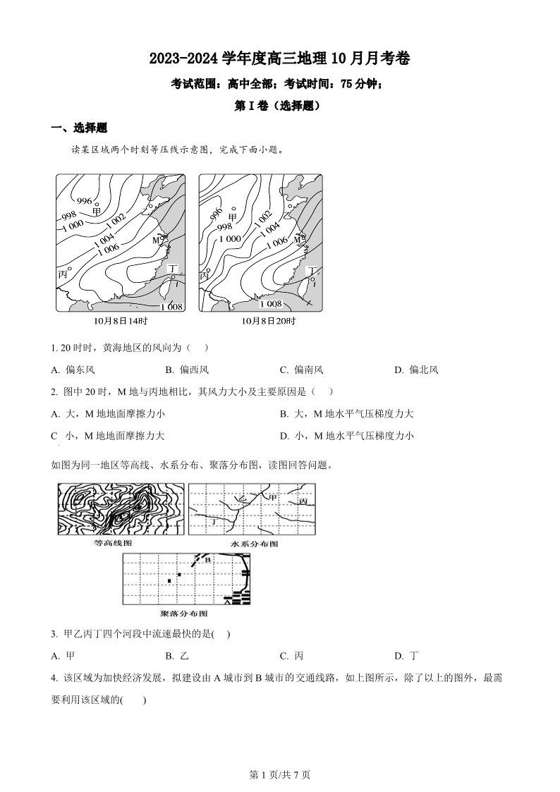 河北省保定市唐县第一中学2024届高三上学期10月月考 地理