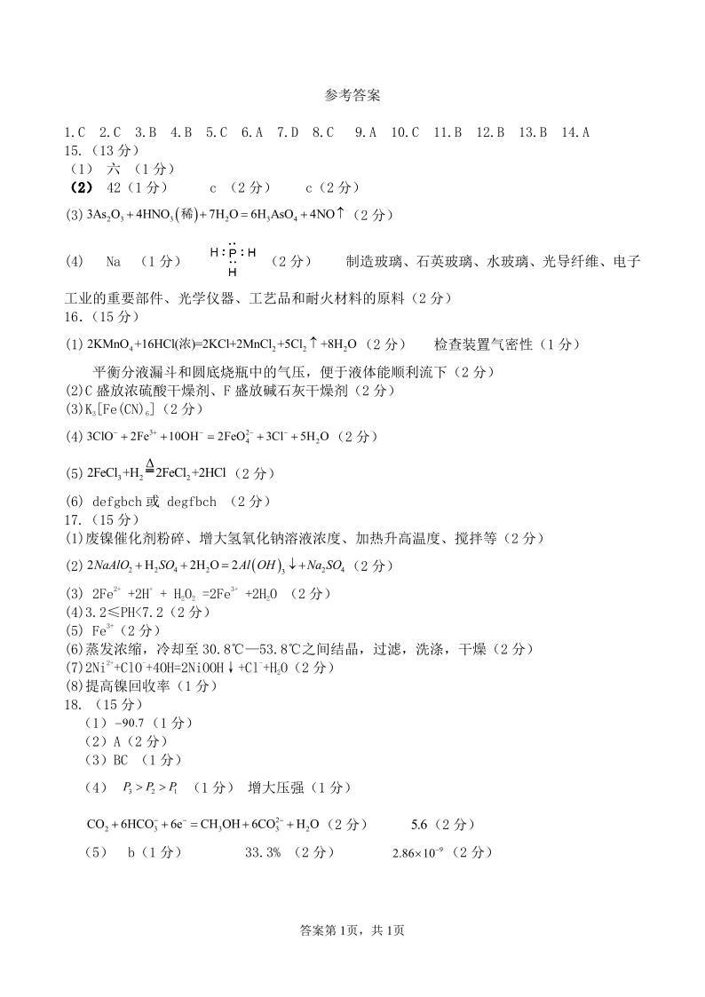河北省保定市唐县第一中学2024届高三上学期10月月考 化学答案