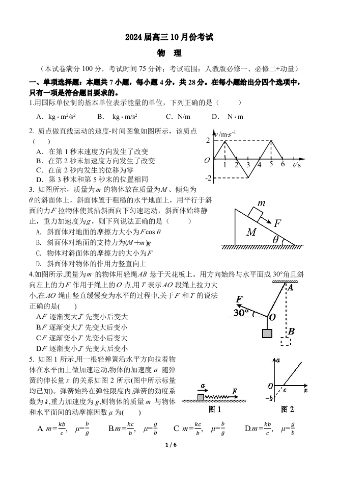 河北省保定市唐县第一中学2024届高三上学期10月月考 物理