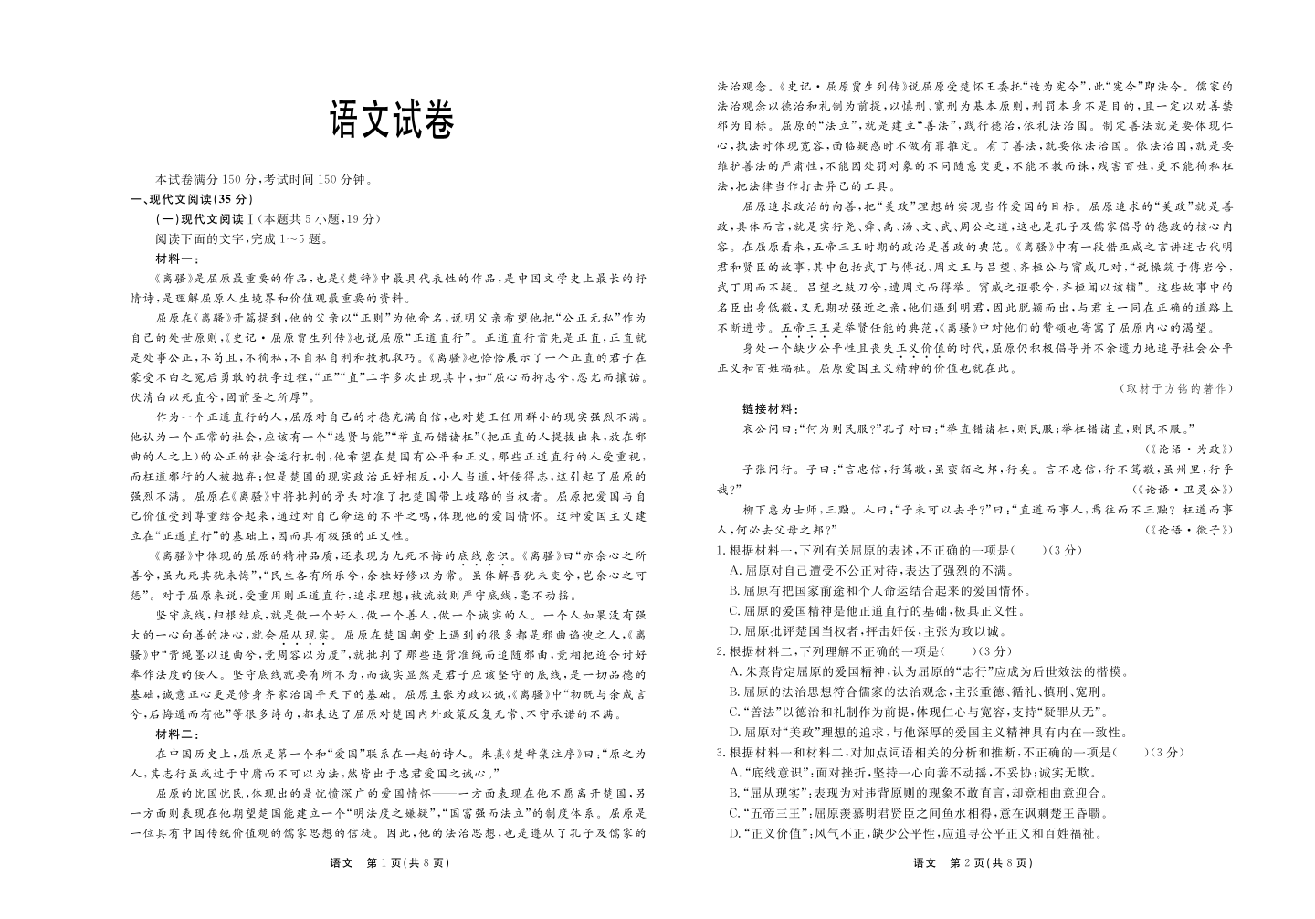 河北省部分高中2024届高三下学期一模试题 语文 PDF版含解析