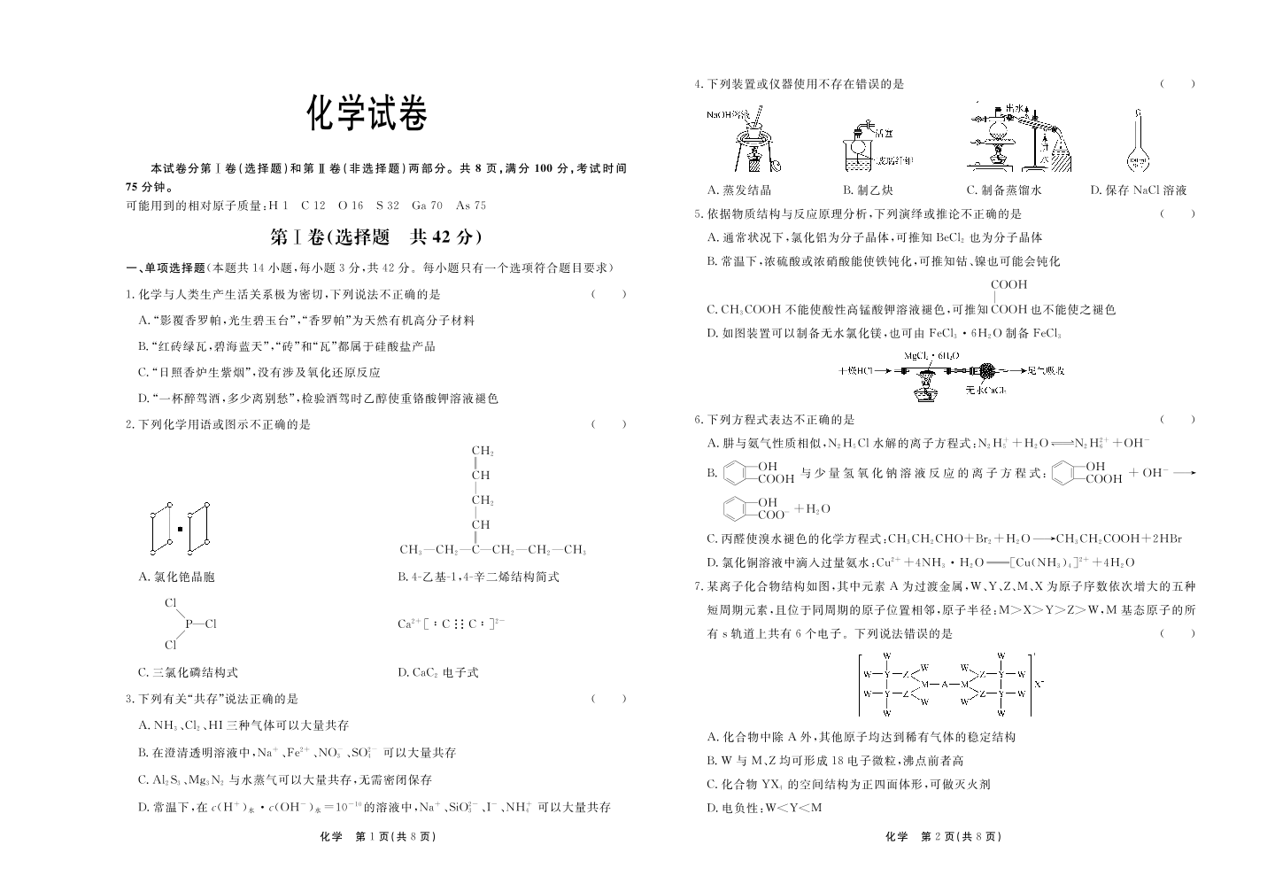 河北省部分高中2024届高三下学期一模试题 化学 PDF版含答案