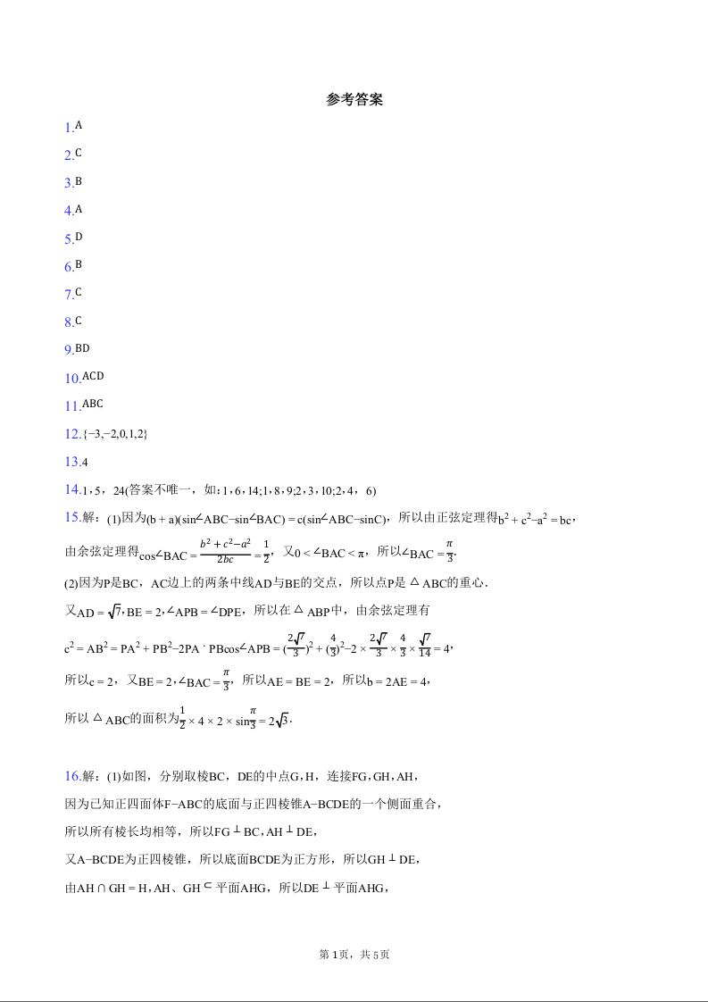 邯郸市2025+届高三年级第一次调研监测+数学答案