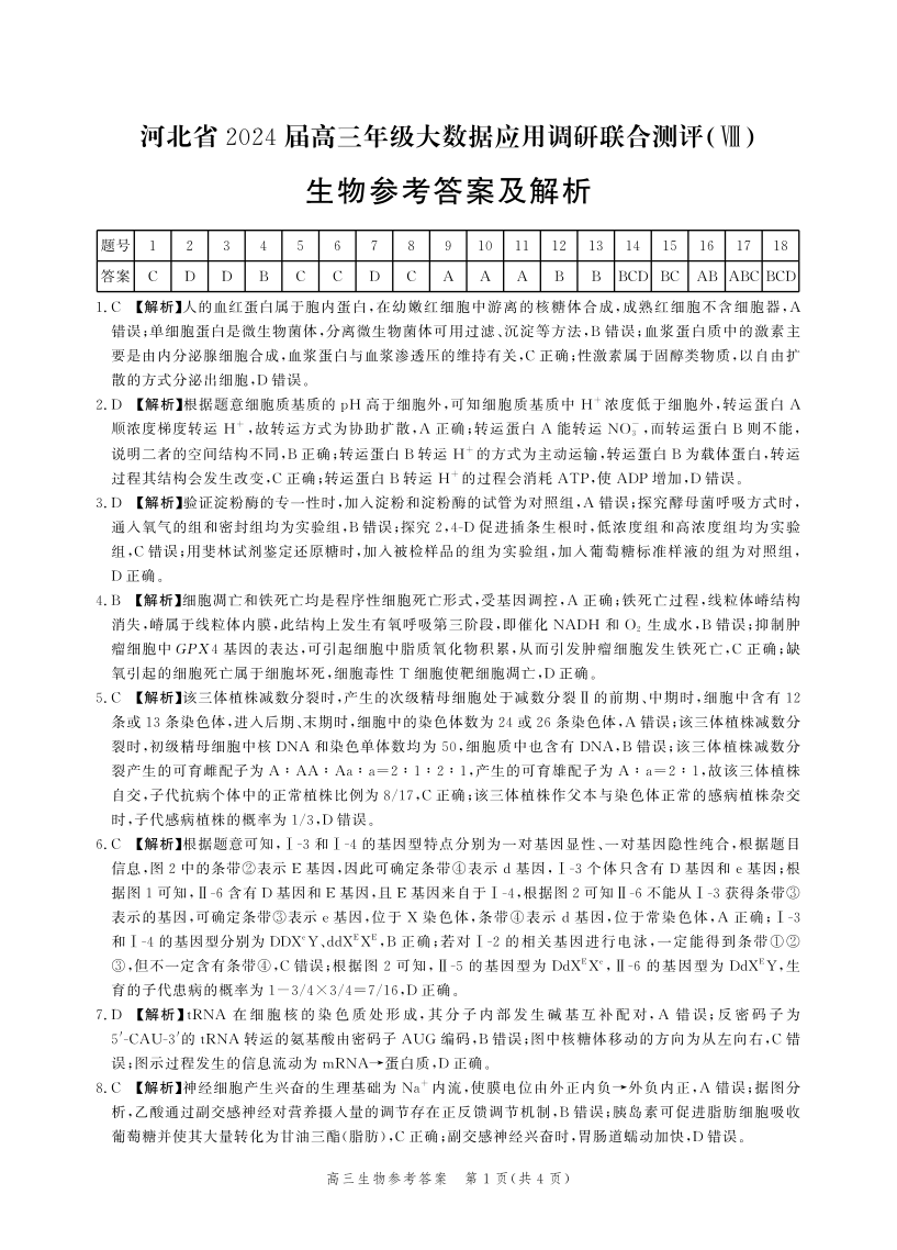 河北省2024届高三年级下学期大数据应用调研联合测评(Ⅷ)生物答案