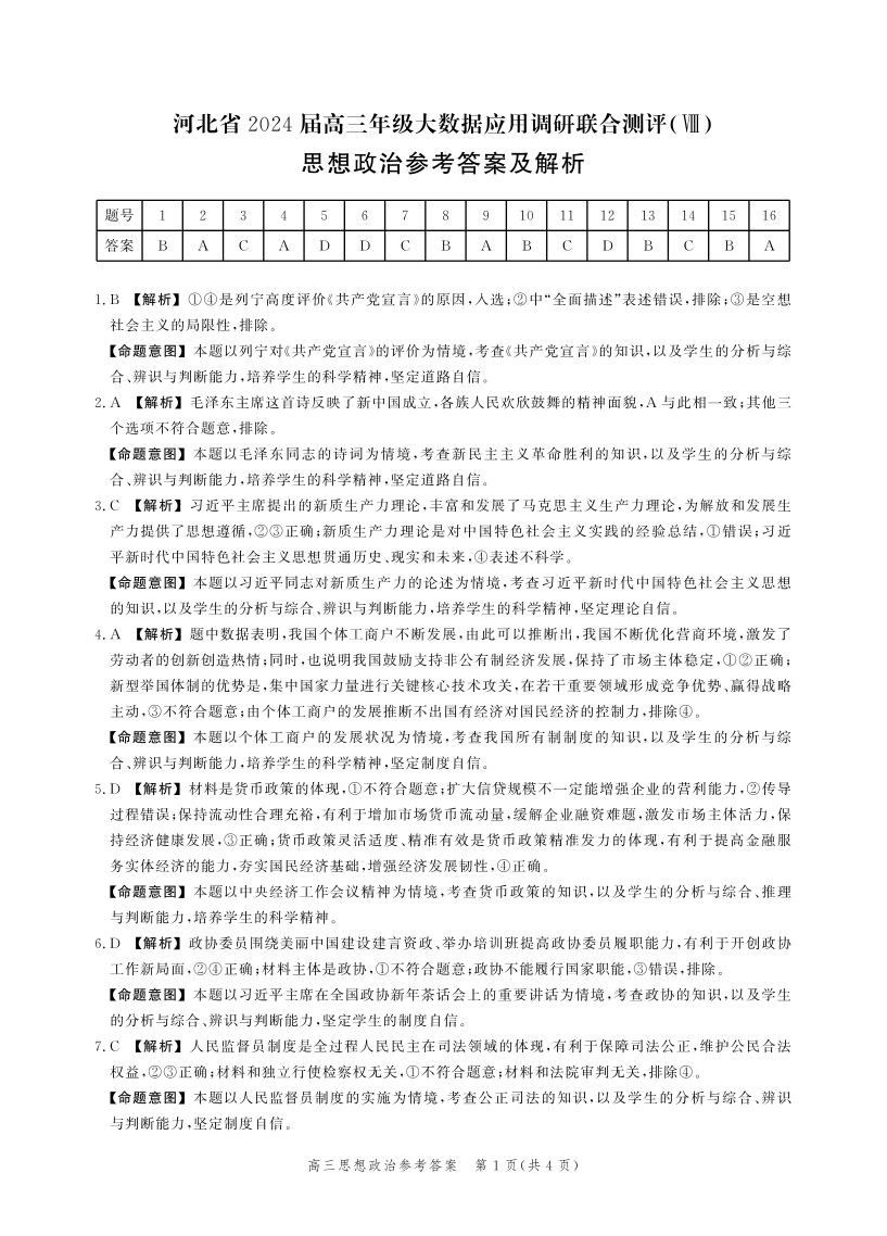 河北省2024届高三年级下学期大数据应用调研联合测评(Ⅷ)政治答案