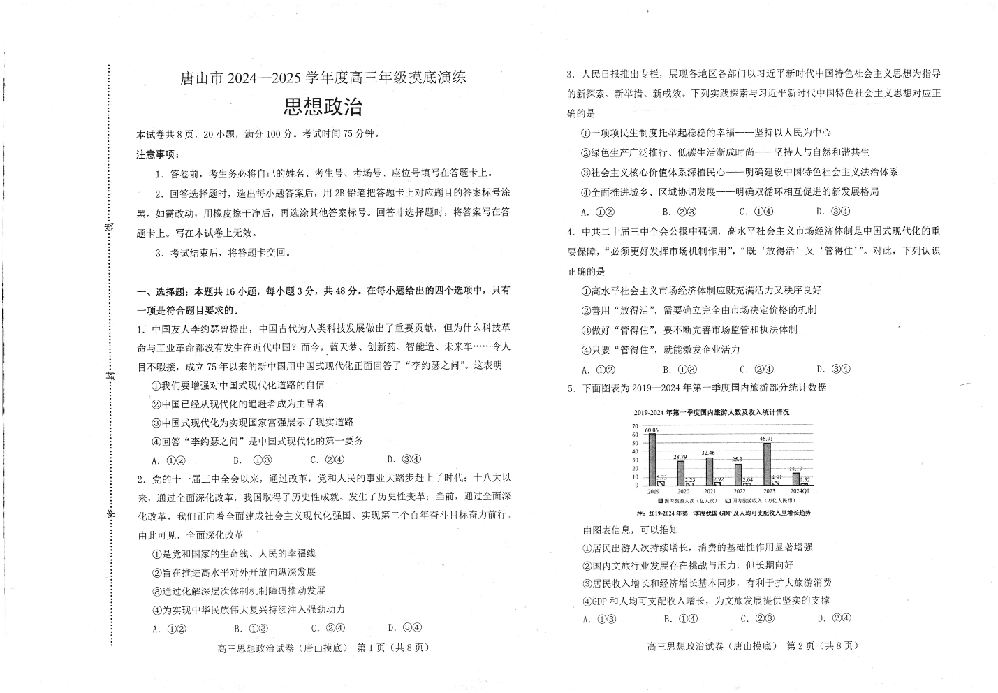 河北省唐山市2024-2025学年高三上学期摸底演练+政治