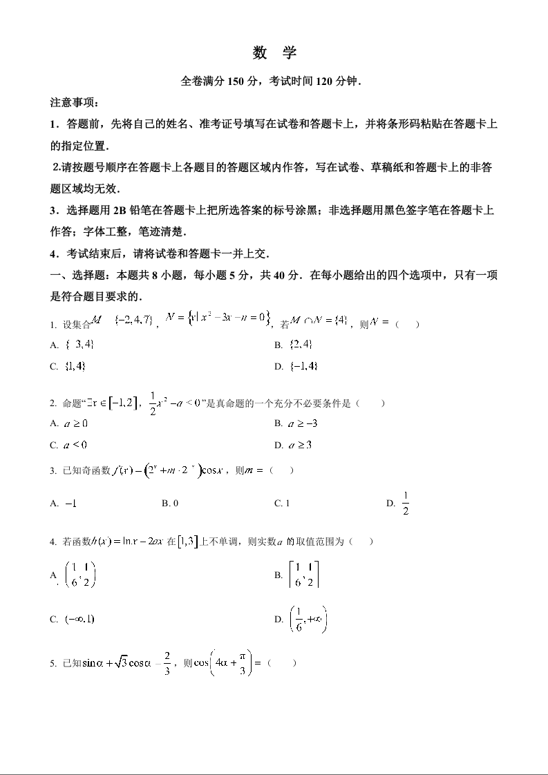 福建省百校联考2024-2025学年高三上学期10月测评+数学