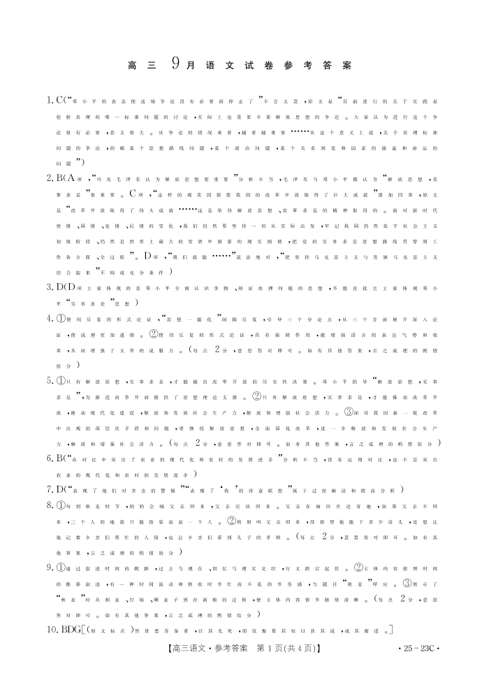 福建省部分学校2025届高三9月开学大联考+语文答案