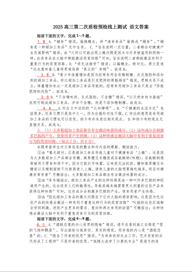 福州三中2024-2025学年第一学期高三第二次质量检测+语文答案