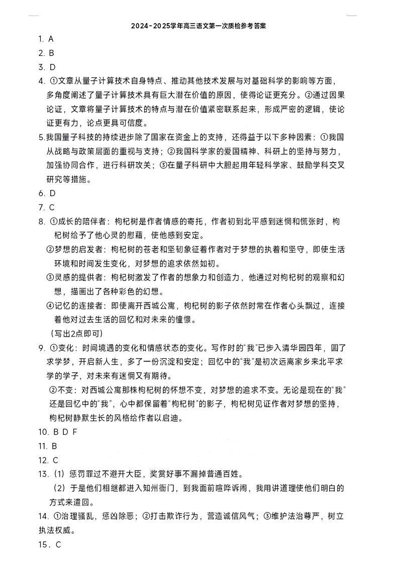 福建省福州市2024-2025学年高三年级上学期第一次质量检测+语文答案