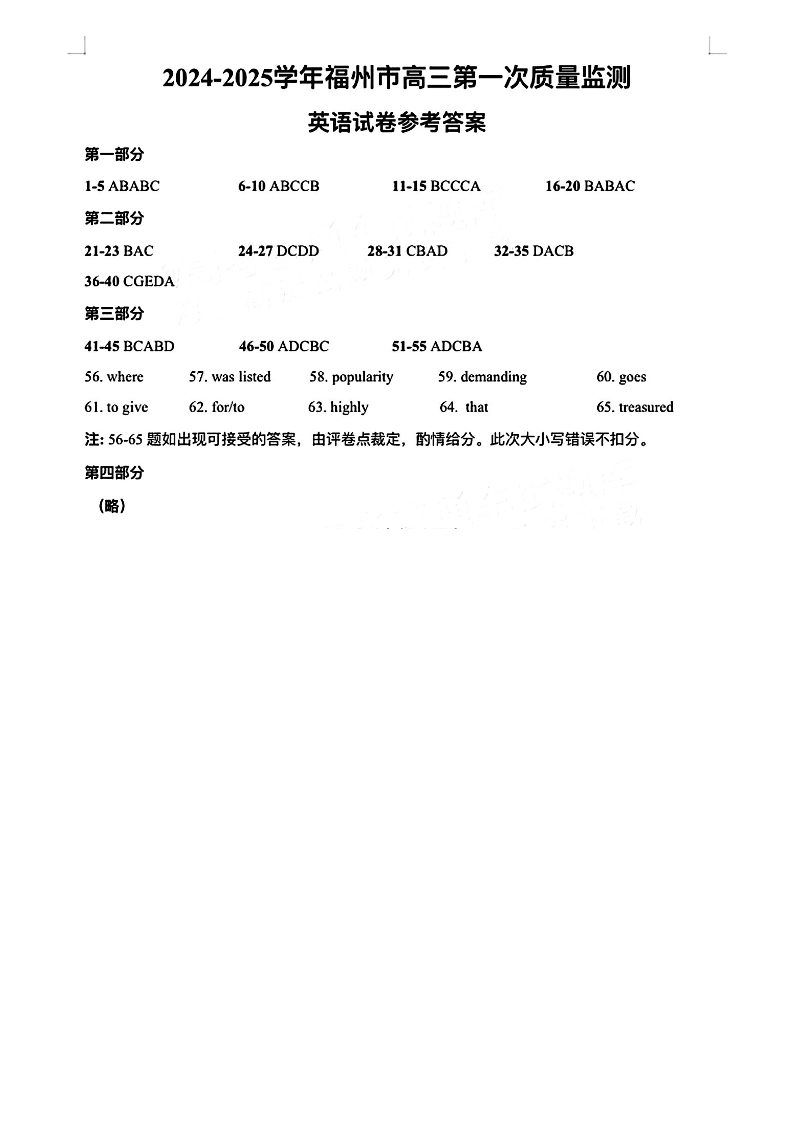 福建省福州市2024-2025学年高三年级上学期第一次质量检测+英语答案