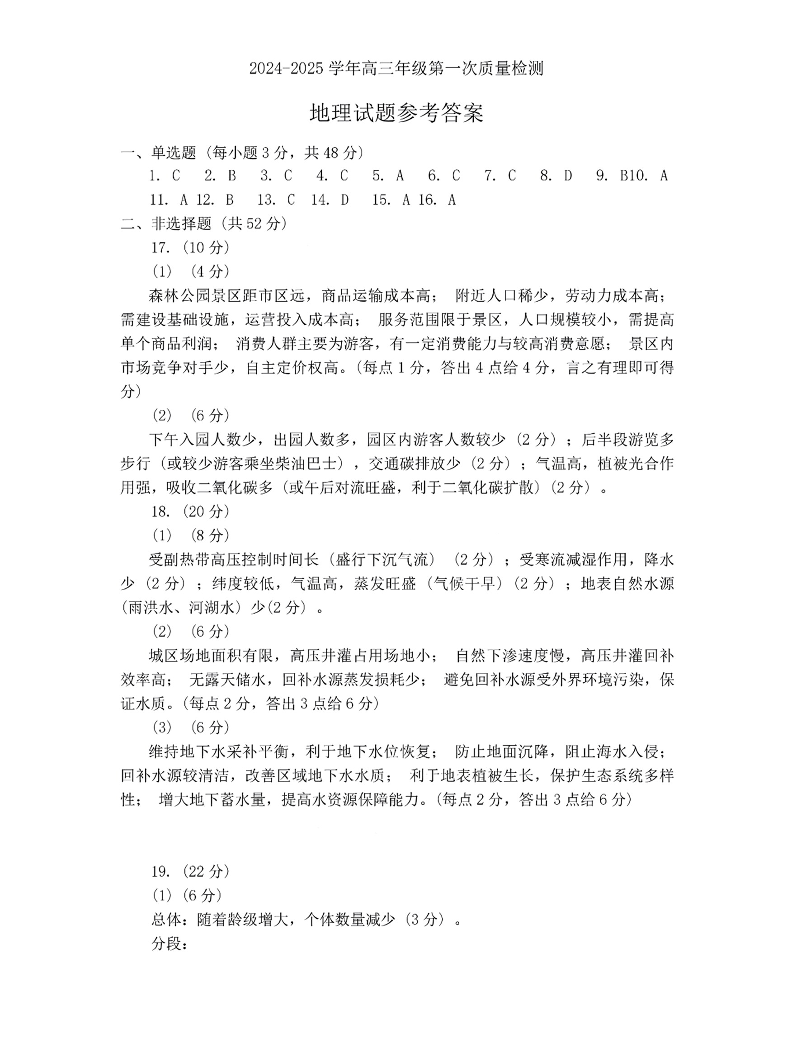 福建省福州市2024-2025学年高三年级上学期第一次质量检测+地理答案