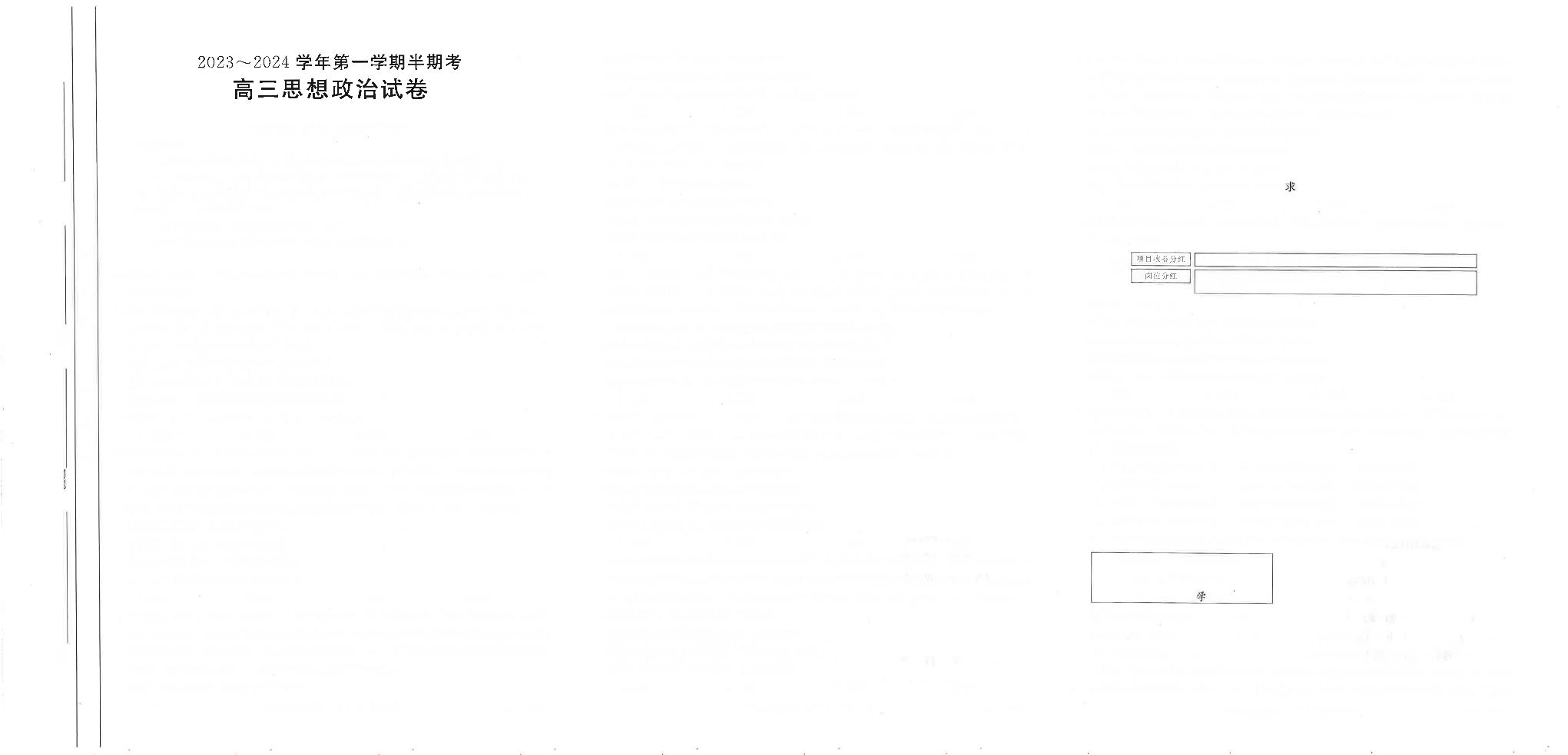 福建省龙岩市名校2023-2024学年高三上学期期中考试 政治