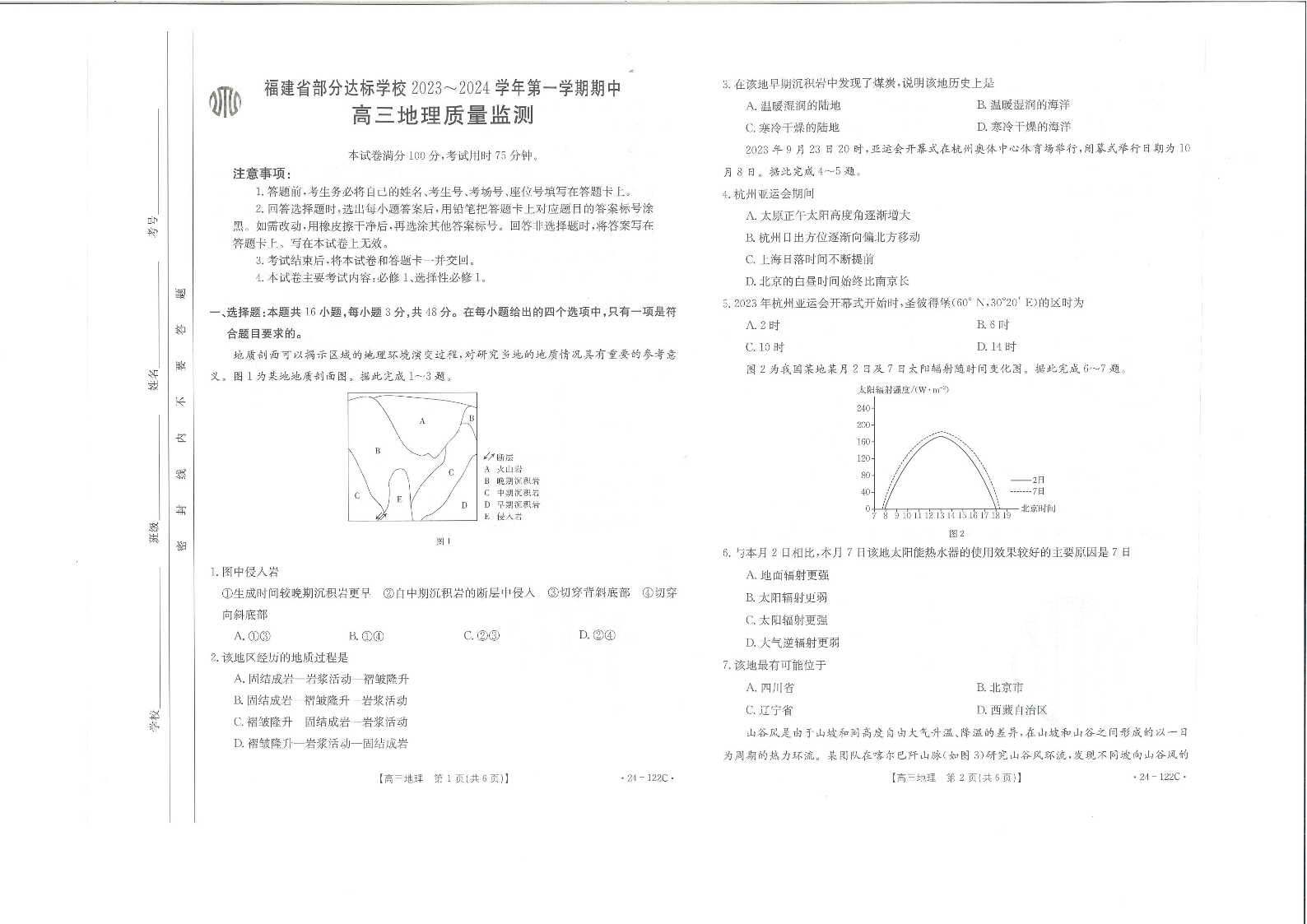 福建省宁德市部分达标学校2023-2024学年高三上学期期中质量检测 地理