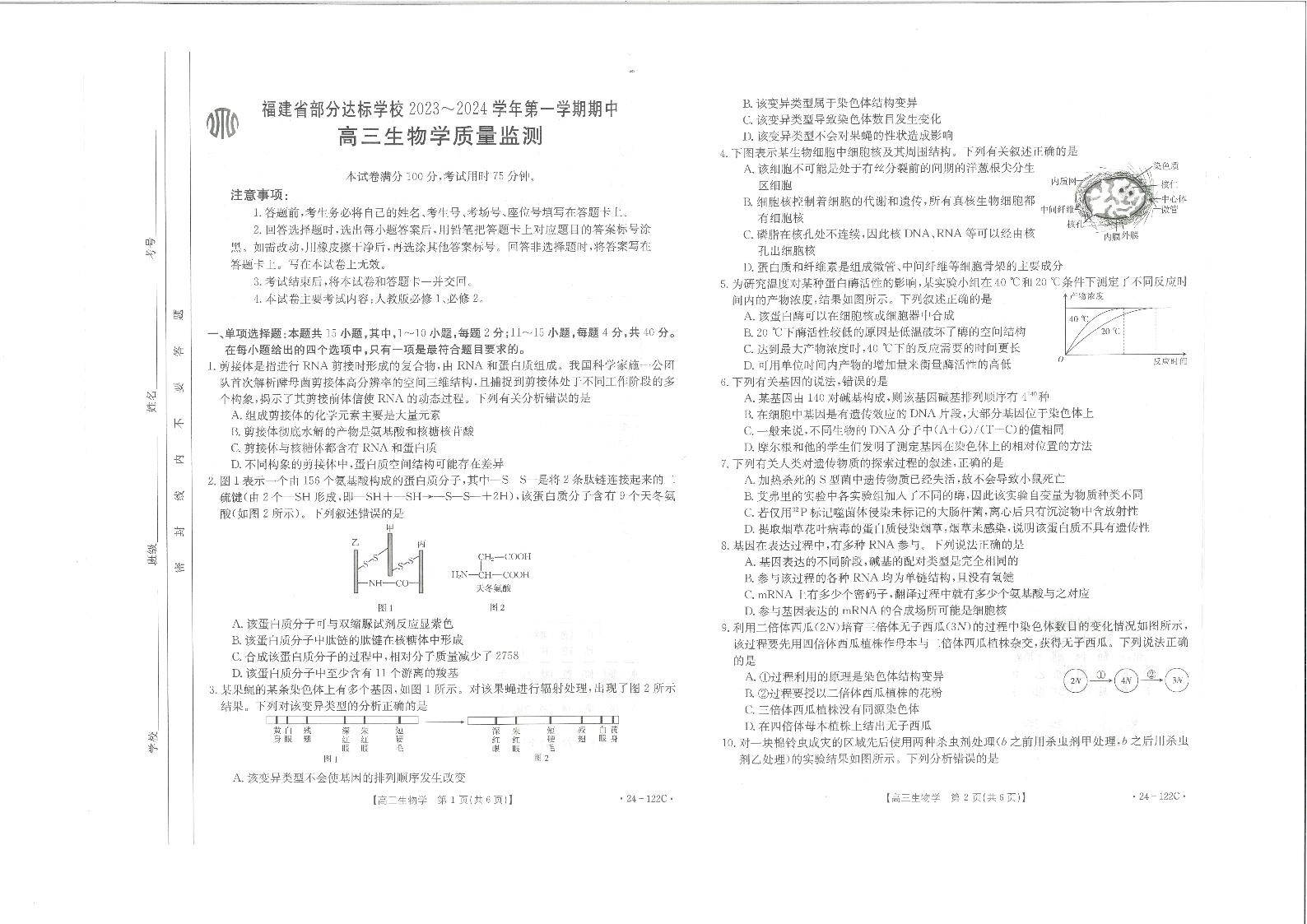 福建省宁德市部分达标学校2023-2024学年高三上学期期中质量检测 生物
