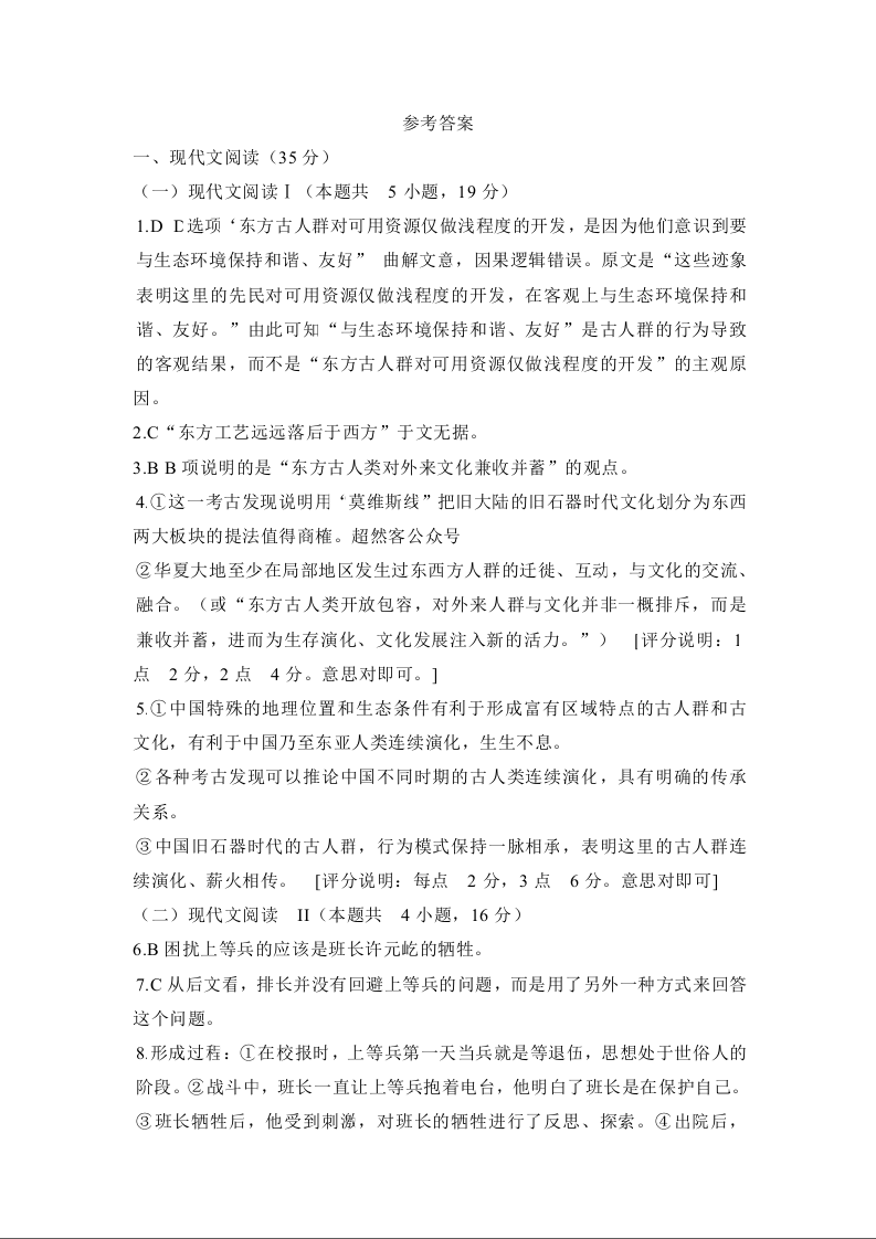 广东省东莞市2023-2024学年高三上学期1月期末教学质量检查 语文答案