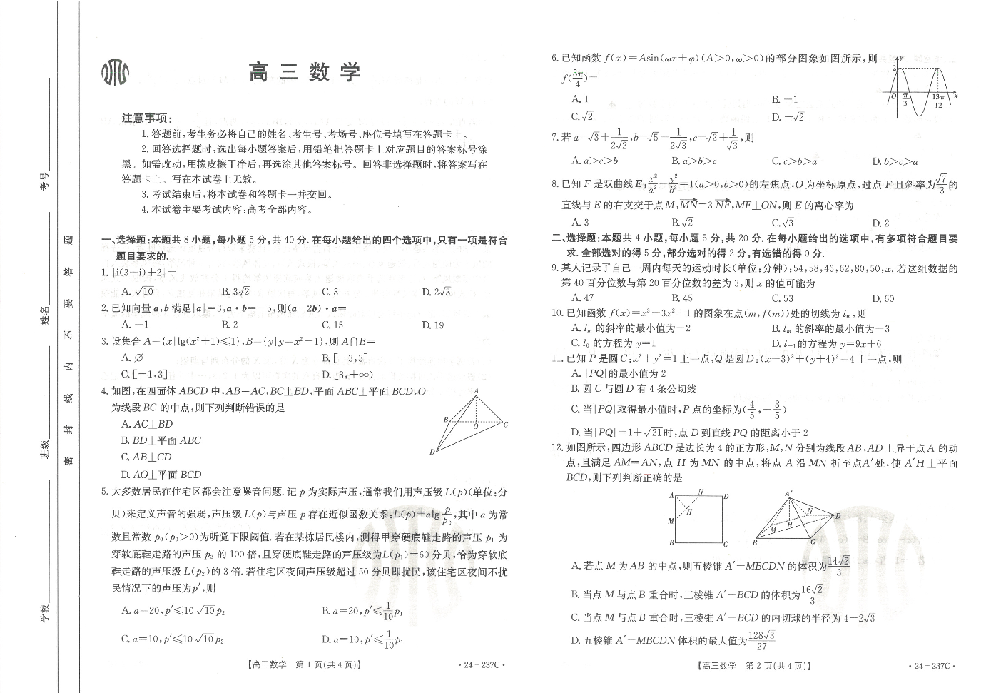 广东省部分名校2023-2024学年高三上学期12月联合质量检测 数学