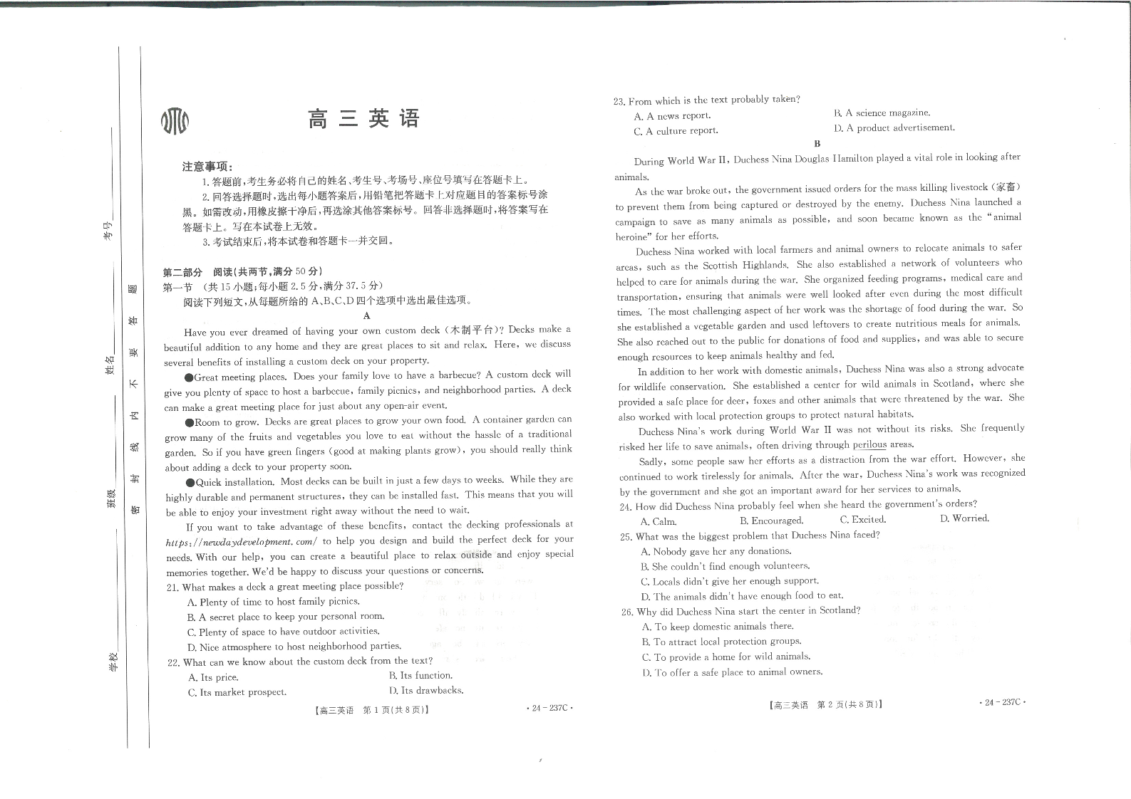 广东省部分名校2023-2024学年高三上学期12月联合质量检测 英语