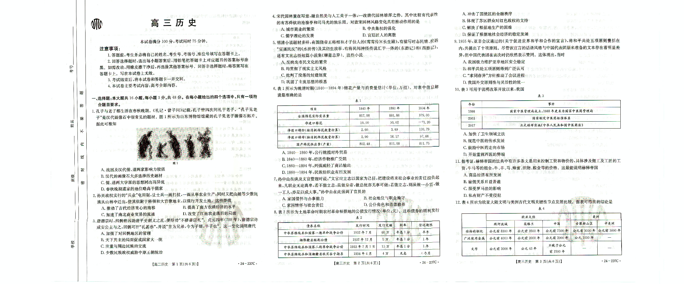 广东省部分名校2023-2024学年高三上学期12月联合质量检测 历史