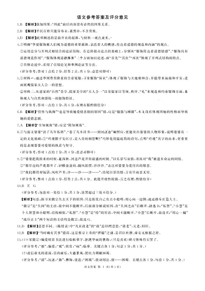 深圳外国语学校高中部2024届高三年级第四次月考 语文答案