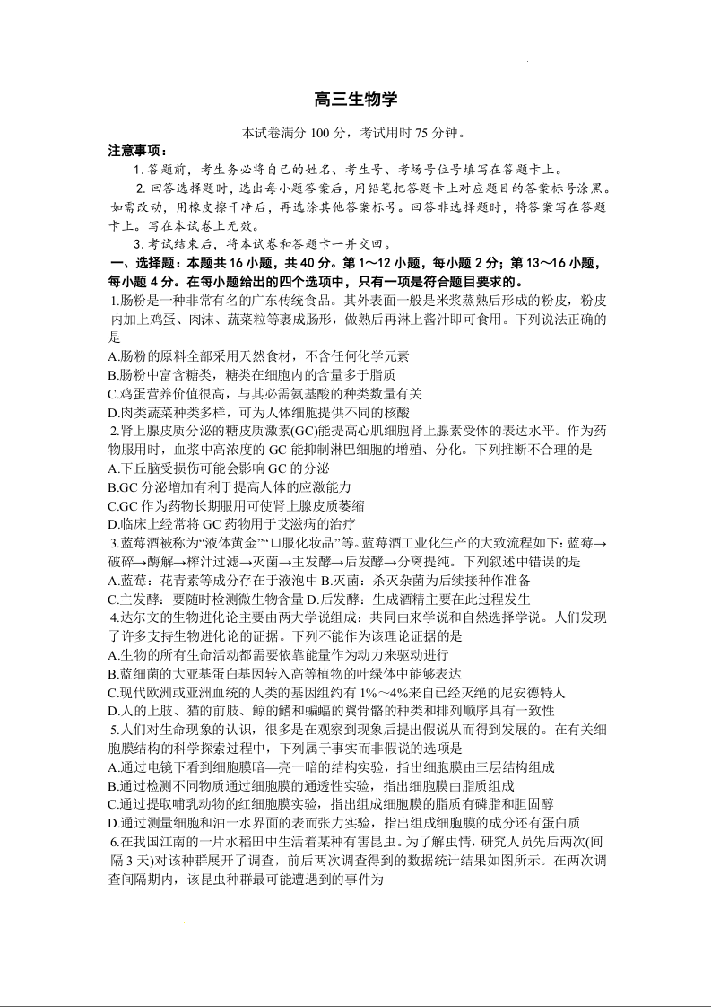 广东省部分学校2023-2024学年高三上学期11月大联考 生物