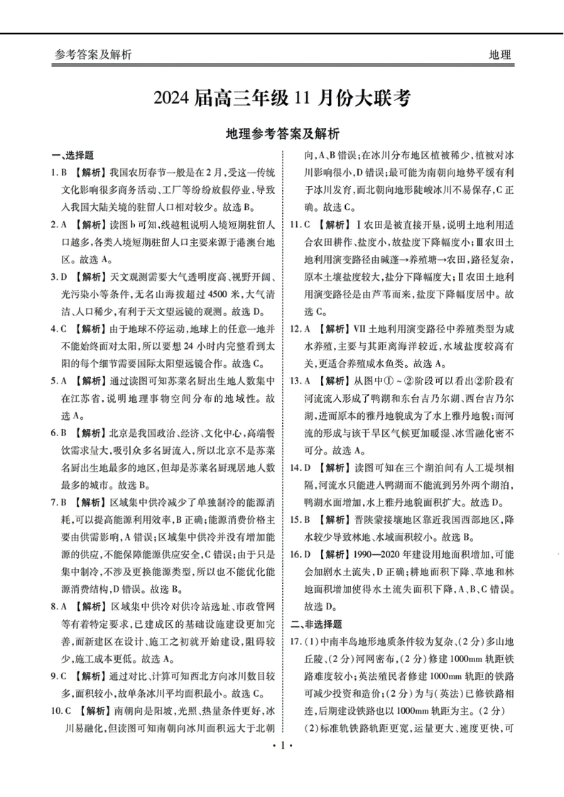 广东衡水金卷2024届高三年级11月大联考 地理答案