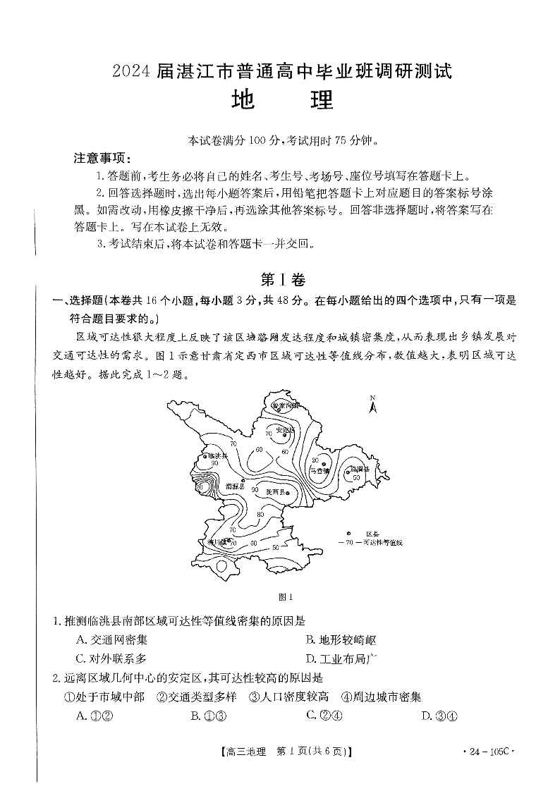 广东省湛江市普通高中2023-2024学年高三上学期10月调研考试 地理