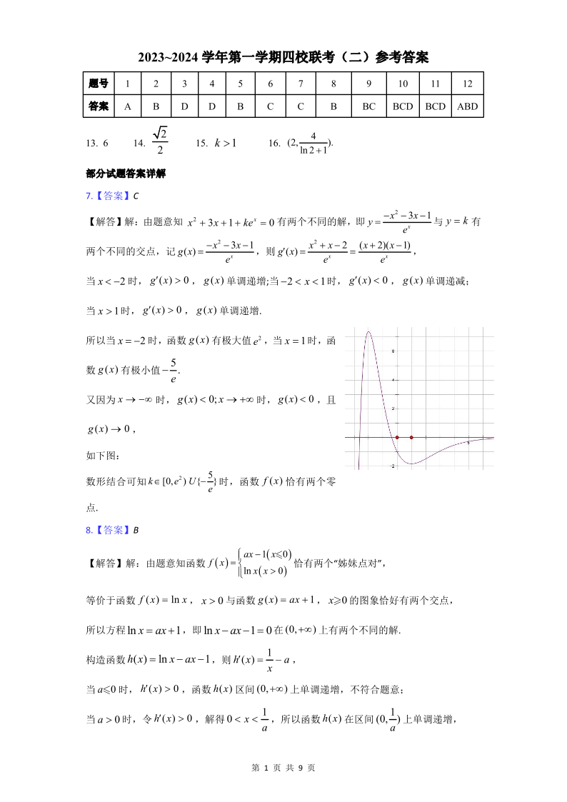 广东省四校2023-2024学年高三上学期联考(二)数学答案