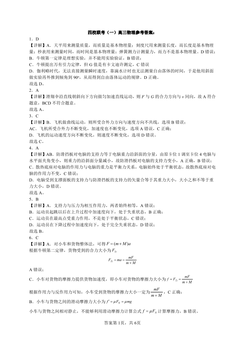 广东省四校2023-2024学年高三上学期联考(二)物理答案