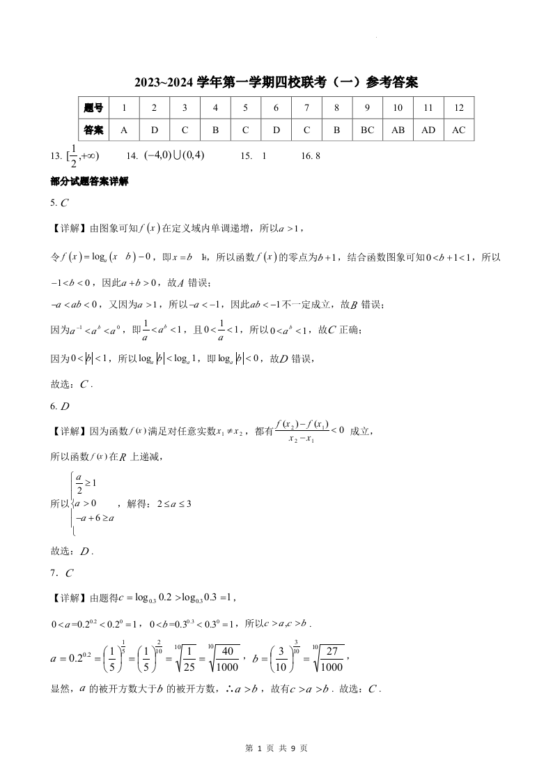 广东省四校联考2023-2024学年高三上学期第一次联考 数学答案
