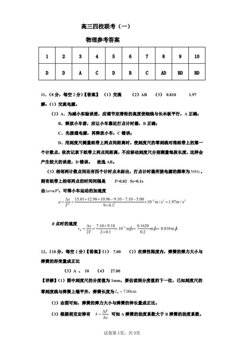 广东省四校联考2023-2024学年高三上学期第一次联考 物理答案