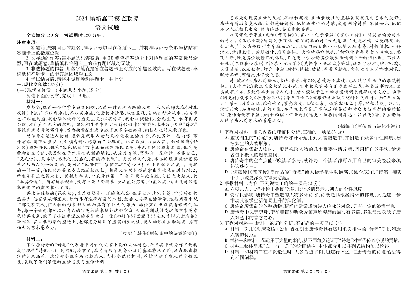 广东省衡水金卷2024届高三上学期摸底联考 语文