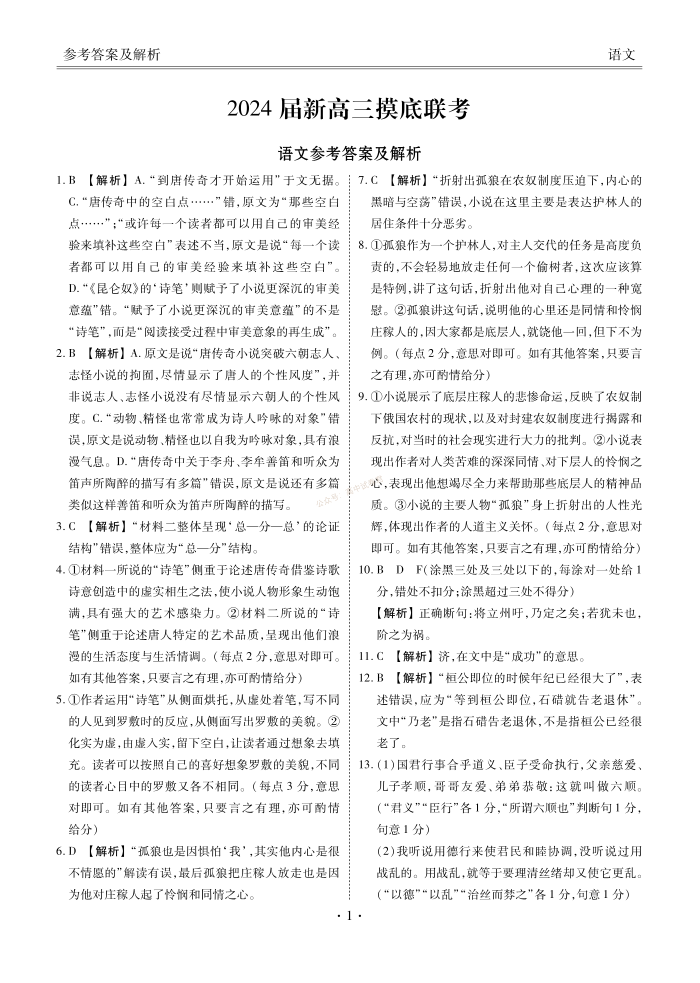 广东省衡水金卷2024届高三上学期摸底联考 语文答案