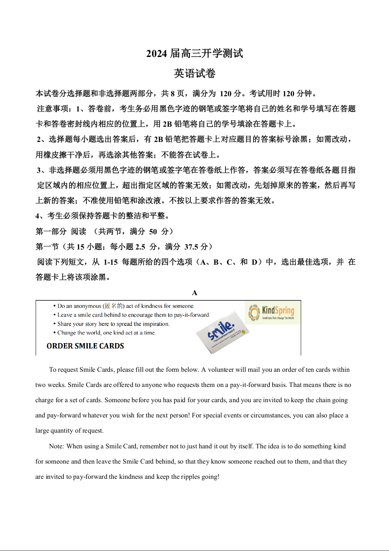 广东省广州市执信中学2023-2024学年高三上学期开学考试 英语试题(解析版)