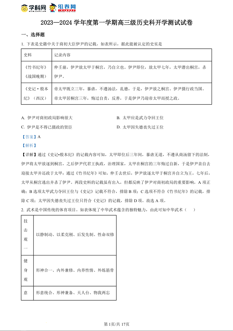 广东省广州市执信中学2023-2024学年高三上学期开学考试 历史试题(解析版)