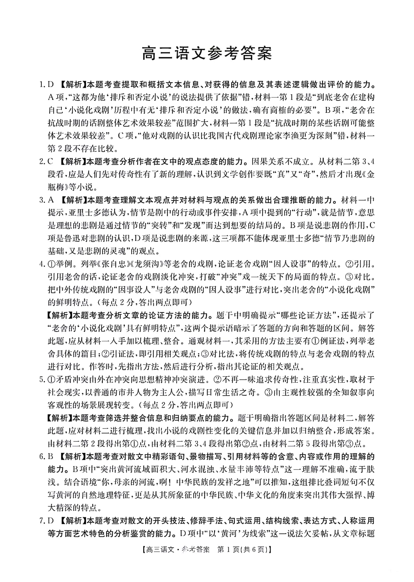 2024届广东省部分学校高三上学期8月联考 语文答案
