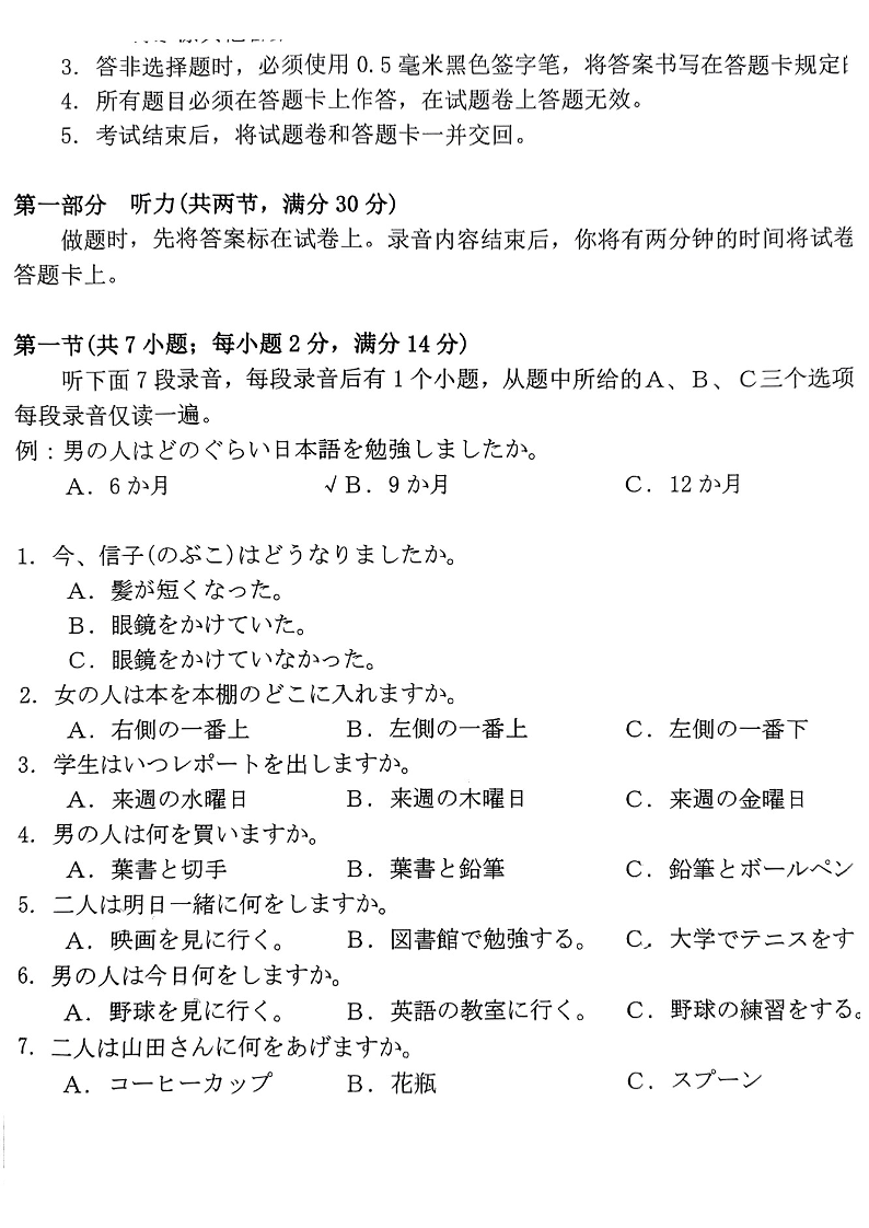 2024届广东省部分学校高三上学期8月联考 日语